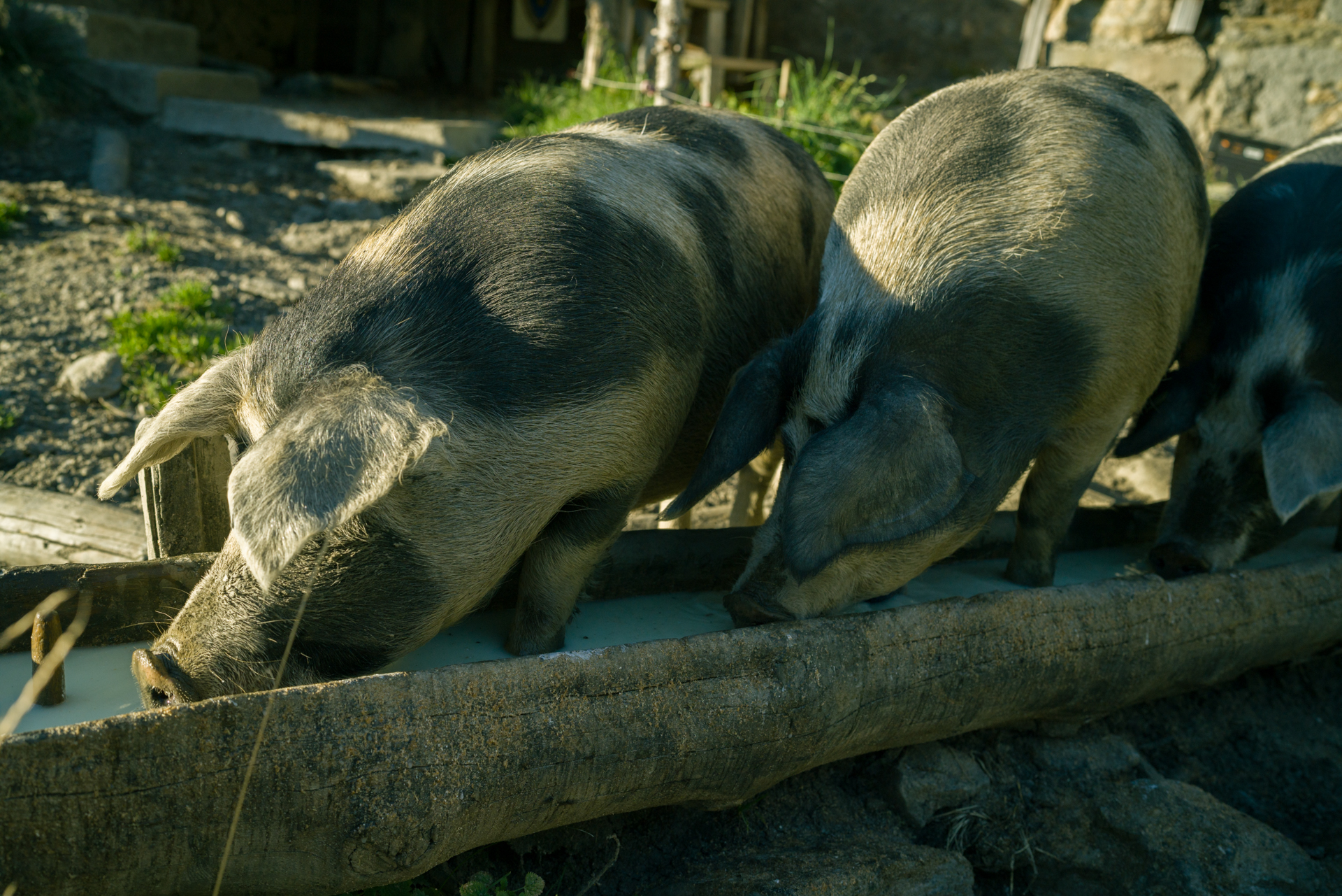 Unsere drei Alpschweine der Rasse Turopolje verwerten auf der Alp die Molke, das «Abfallprodukt» des Käsens und geniessen ihren grossen Auslauf. Anfangs Winter werden sie in der lokalen Metzgerei geschlachtet. Wir verarbeiten das frische Fleisch selber in Handabeit zu köstlichen Würsten und Speck. Wir werden dich zu gegebener Zeit über die Produkte informieren.